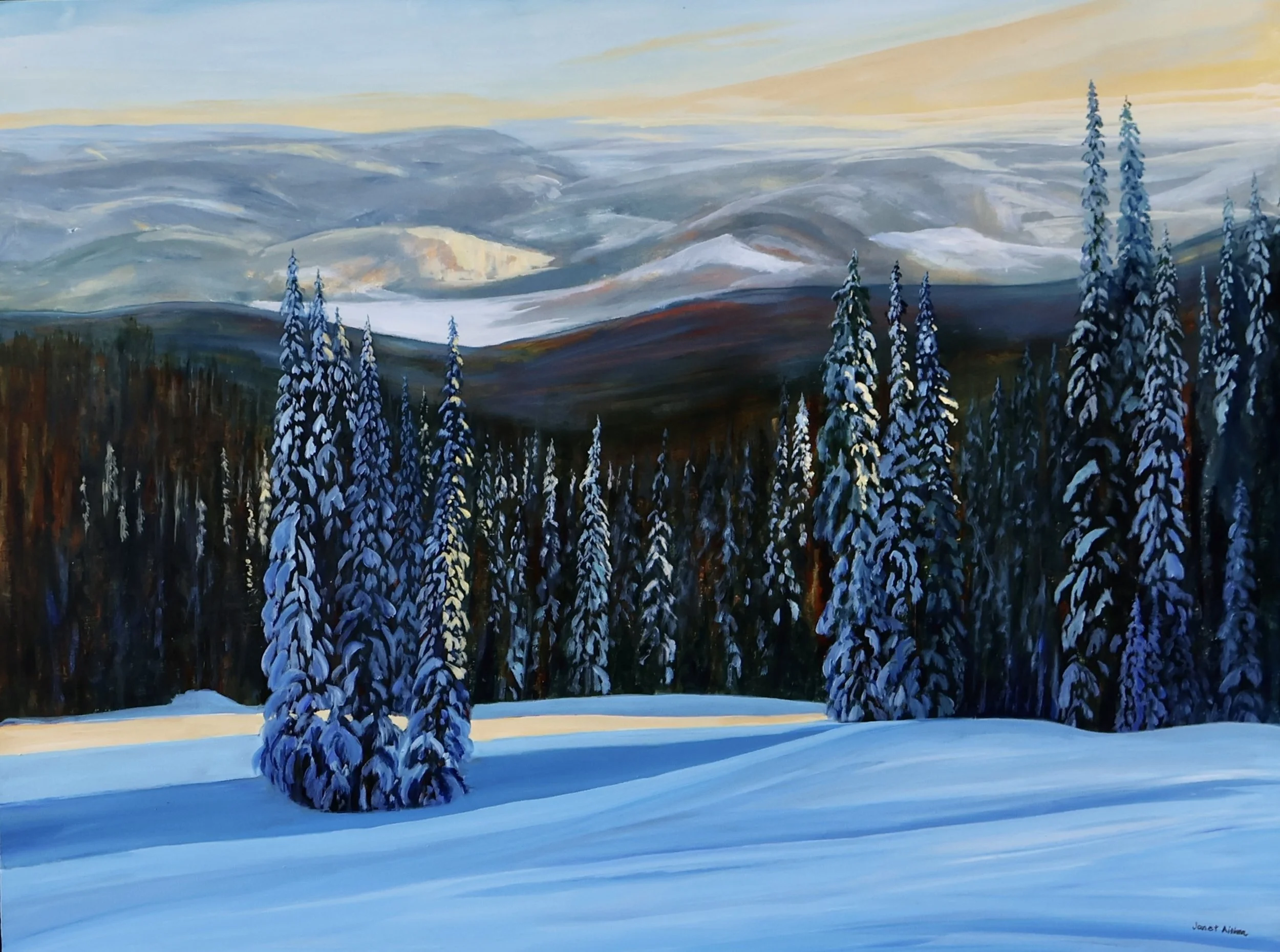I continue to work on my regular acrylic paintings, primarily on cradle board. A recent highlight was completing a large 36” by 48” painting of SilverStar, which I sold to our friends Rick and Cheri in North Vancouver. This work was very meaningful to all of us; Rick told me that the painting was “so much more” than they had imagined, which is the greatest compliment I could receive as an artist.